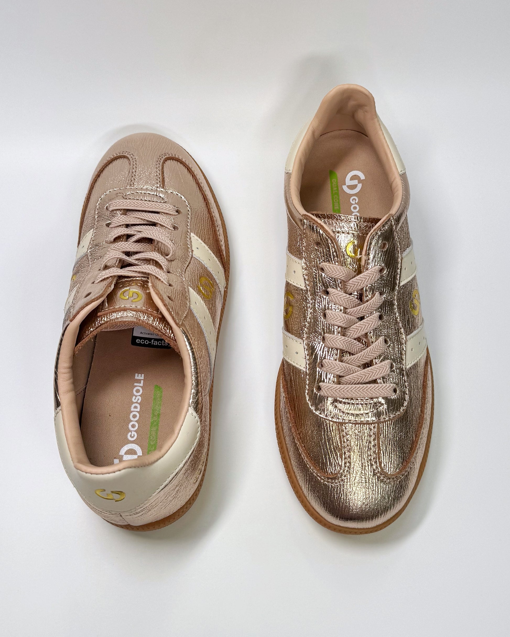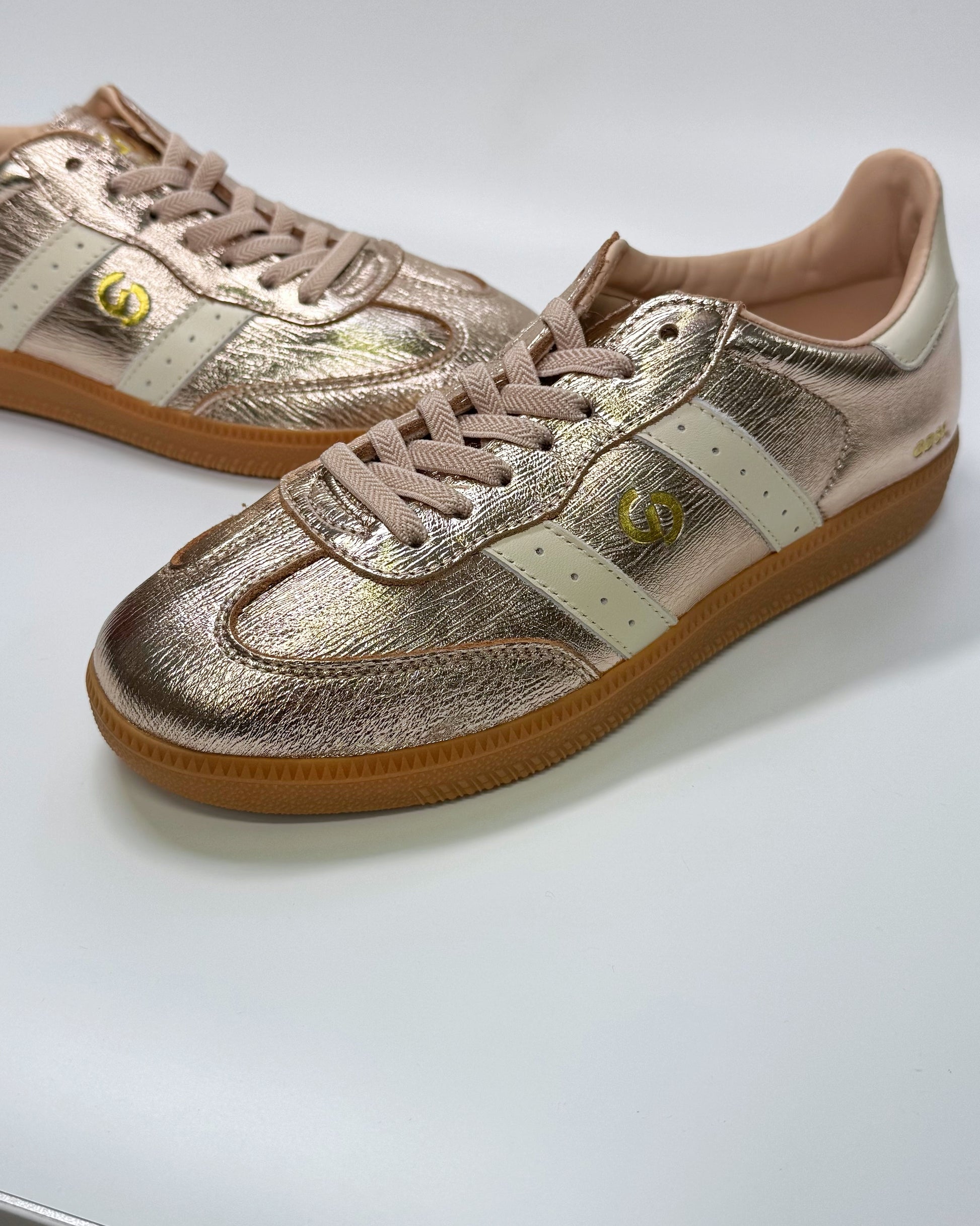 - Metallic Rose Gold Leather and Ivory waxy leather with a parallel overlay design