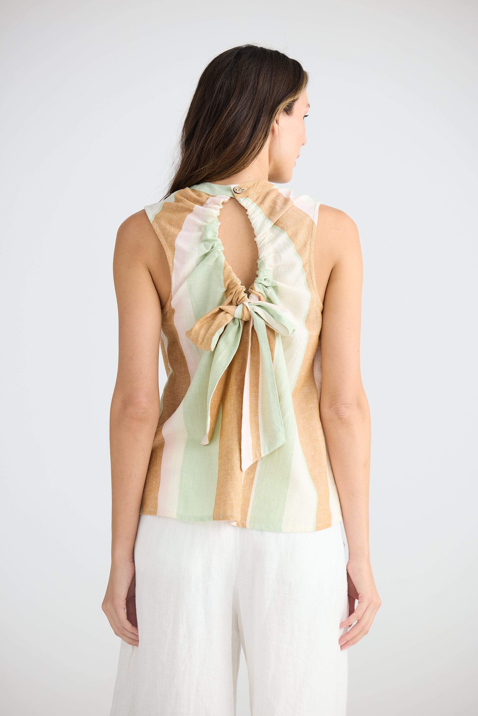 Gathered and adjustable back tie with keyhole