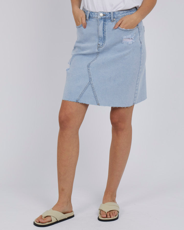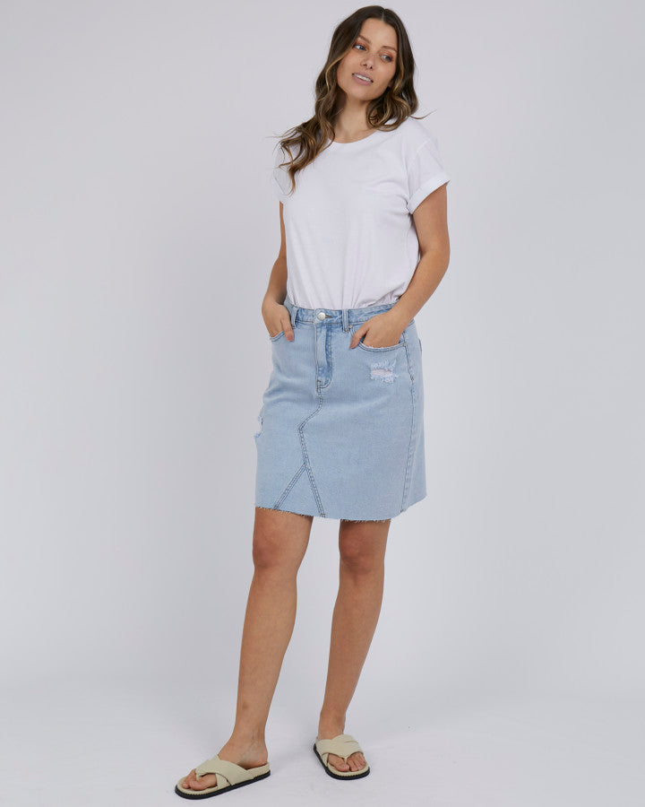 Your new favourite A-line skirt, flaunting a raw edge hem and the relaxed fit of stretch denim, this one will have you sorted for the season.