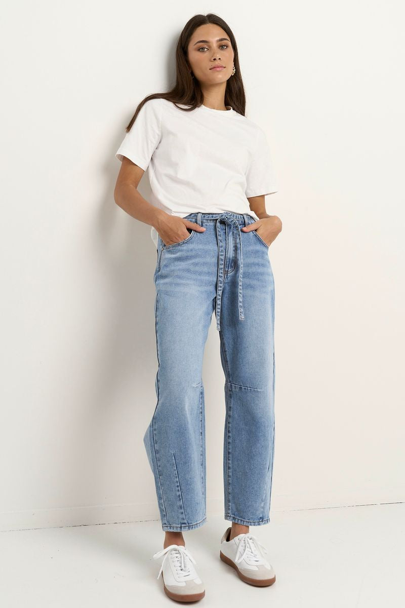 Campus Tie Waist Barrel Jean (Light Blue)