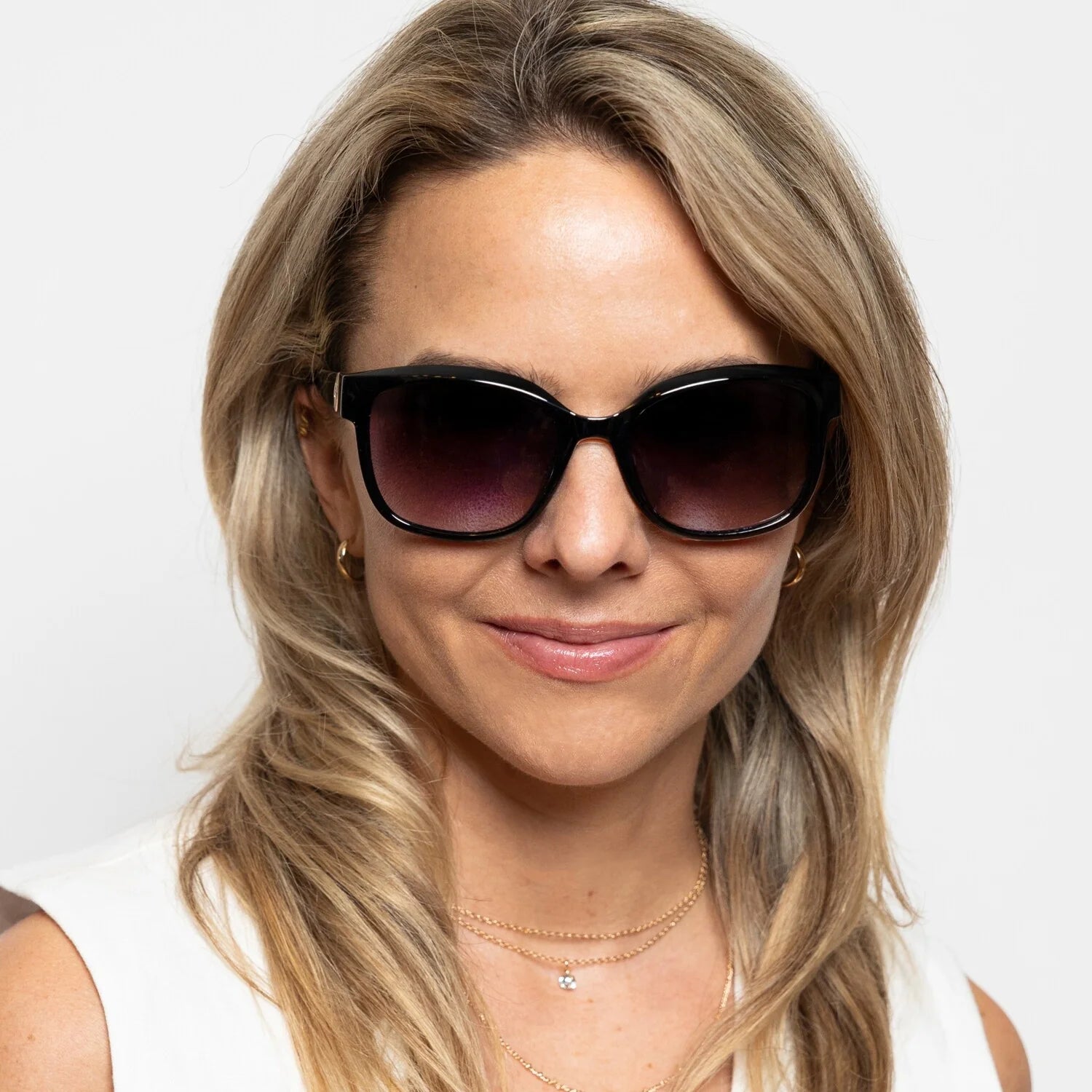 Harmony in black is the definition of understated confidence. With her sharp black frame and refined gold accents along the arms, she’s bold without being loud, like a favourite song on repeat. Her square silhouette flatters with ease, while polarised smoke lenses offer 100% UV protection for all-day comfort. Whether you’re powerwalking to a meeting or cruising into the weekend, Harmony keeps everything in tune.