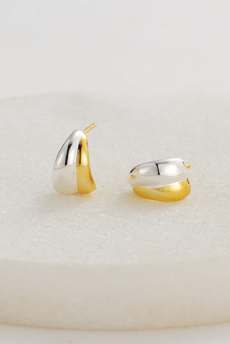 The Mia Huggie is a sleek mixed-metal design that blends polished gold and silver tones in a sculptural silhouette. Compact and versatile, this modern huggie is perfect for everyday wear — adding subtle edge when worn solo or balancing beautifully in a stacked look.