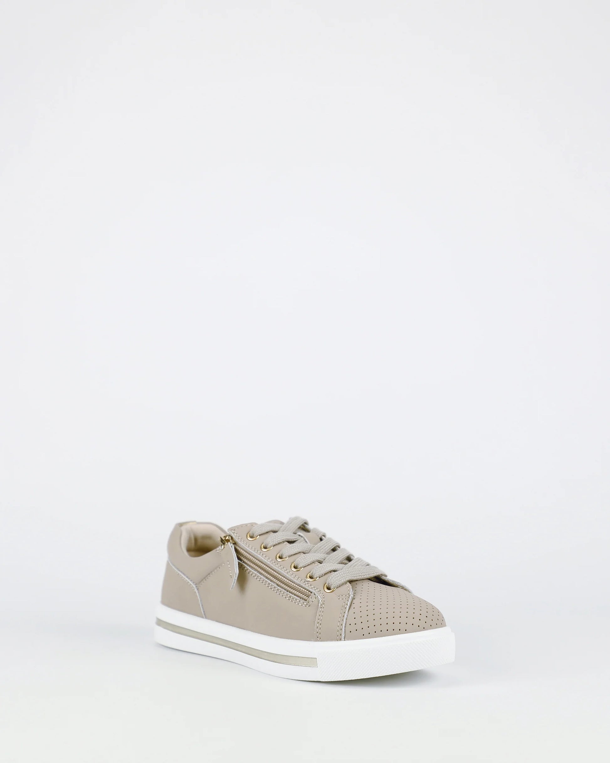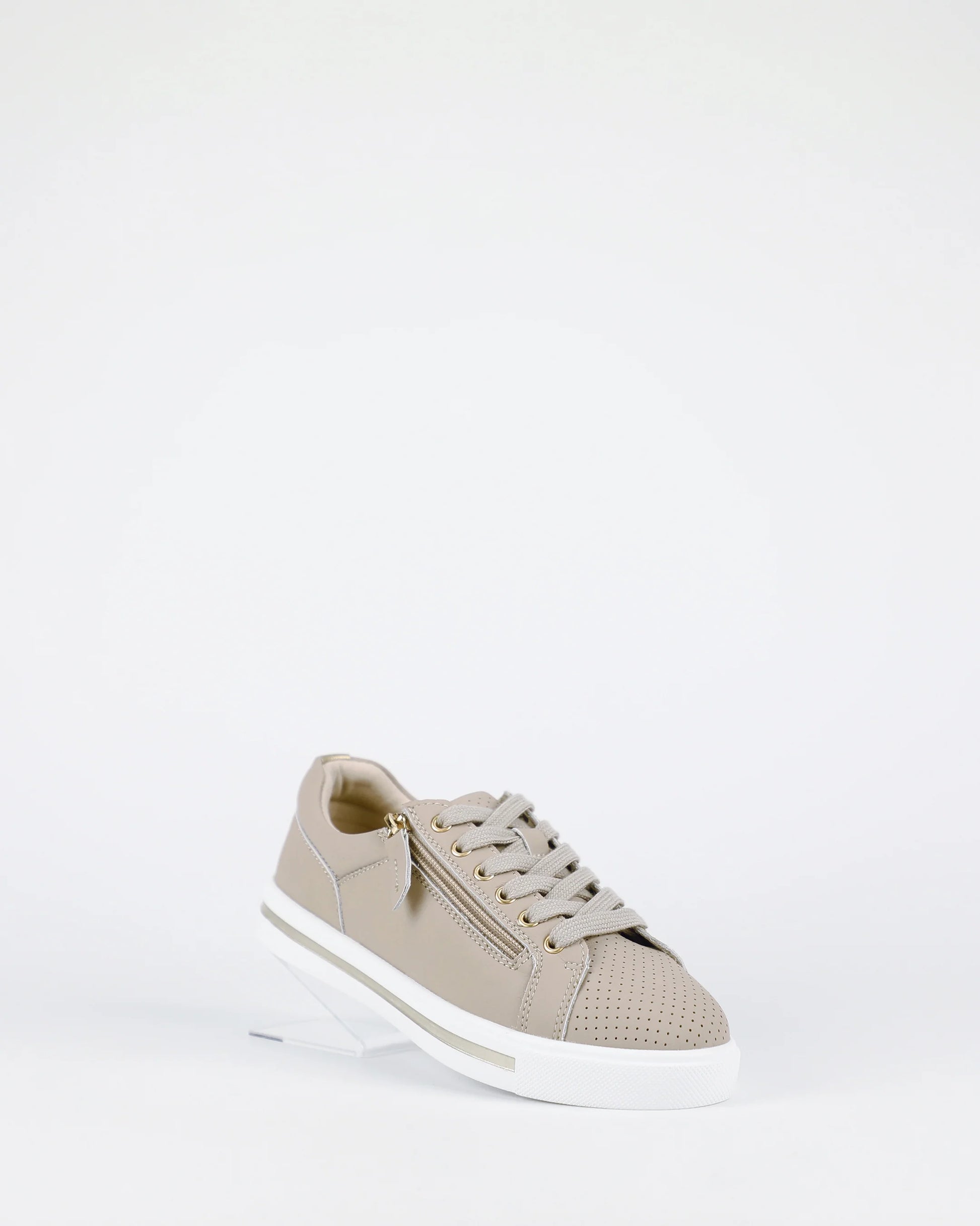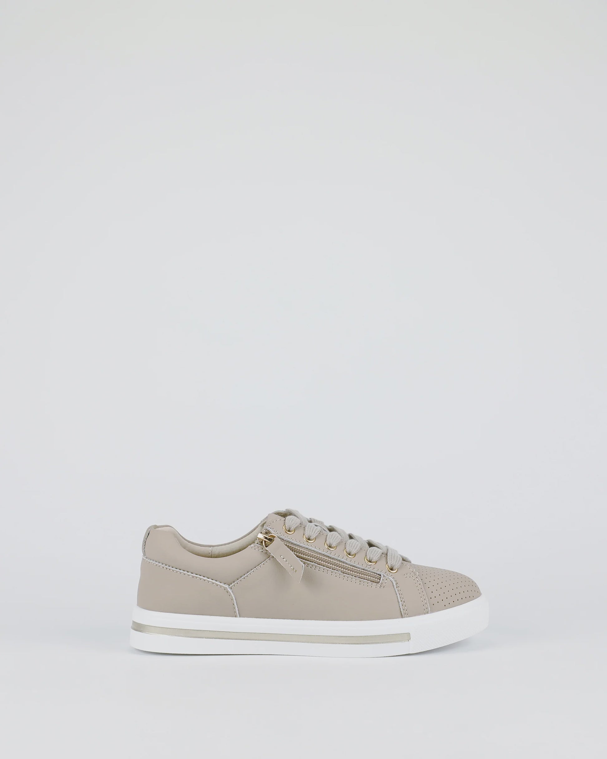 Following the success of our best-selling Kiki, we are pleased to introduce New Kiki, designed with the same classic style and an enhanced comfort footbed for even more lasting wear. Crafted from soft nude leather and finished with a contrasting white sole, it combines everyday ease with timeless sneaker appeal. The functional side zip makes them effortless to slip on and off, while the upgraded Multi Fit inner sole takes comfort to the next level.