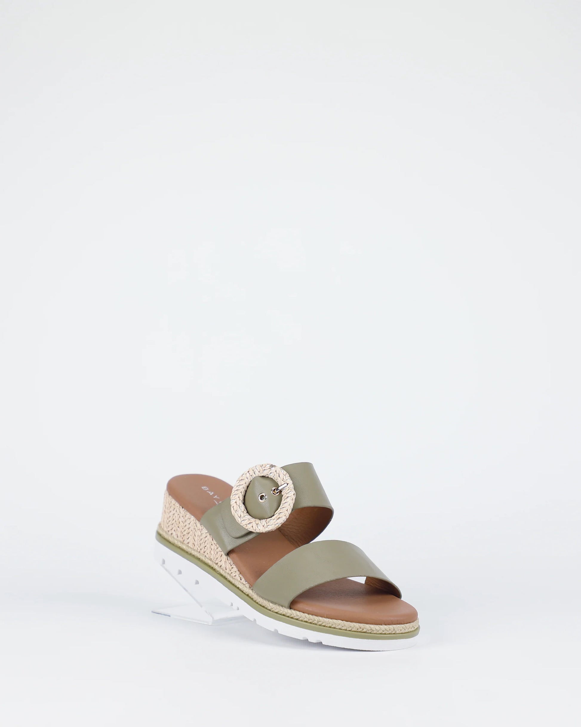 Embrace effortless summer style with Riverton in soft sage leather. Featuring broad straps, a statement woven buckle and a natural-textured wedge, it channels the season’s love of earthy tones and crafted details. Lightweight and versatile, it’s a sandal that blends comfort with on-trend design.