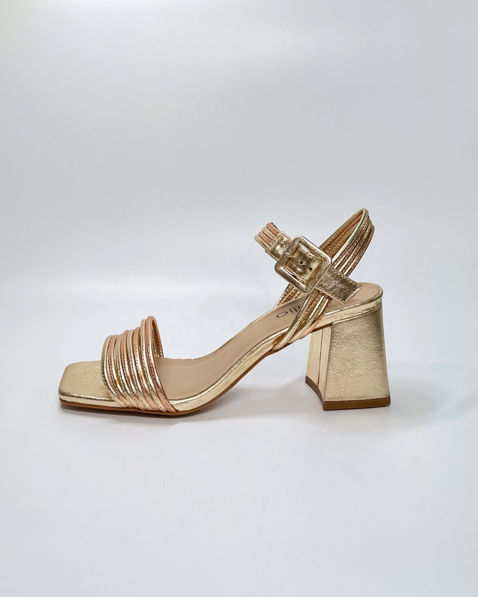 6.5cm heel, light gold & copper leather. Made in brazil