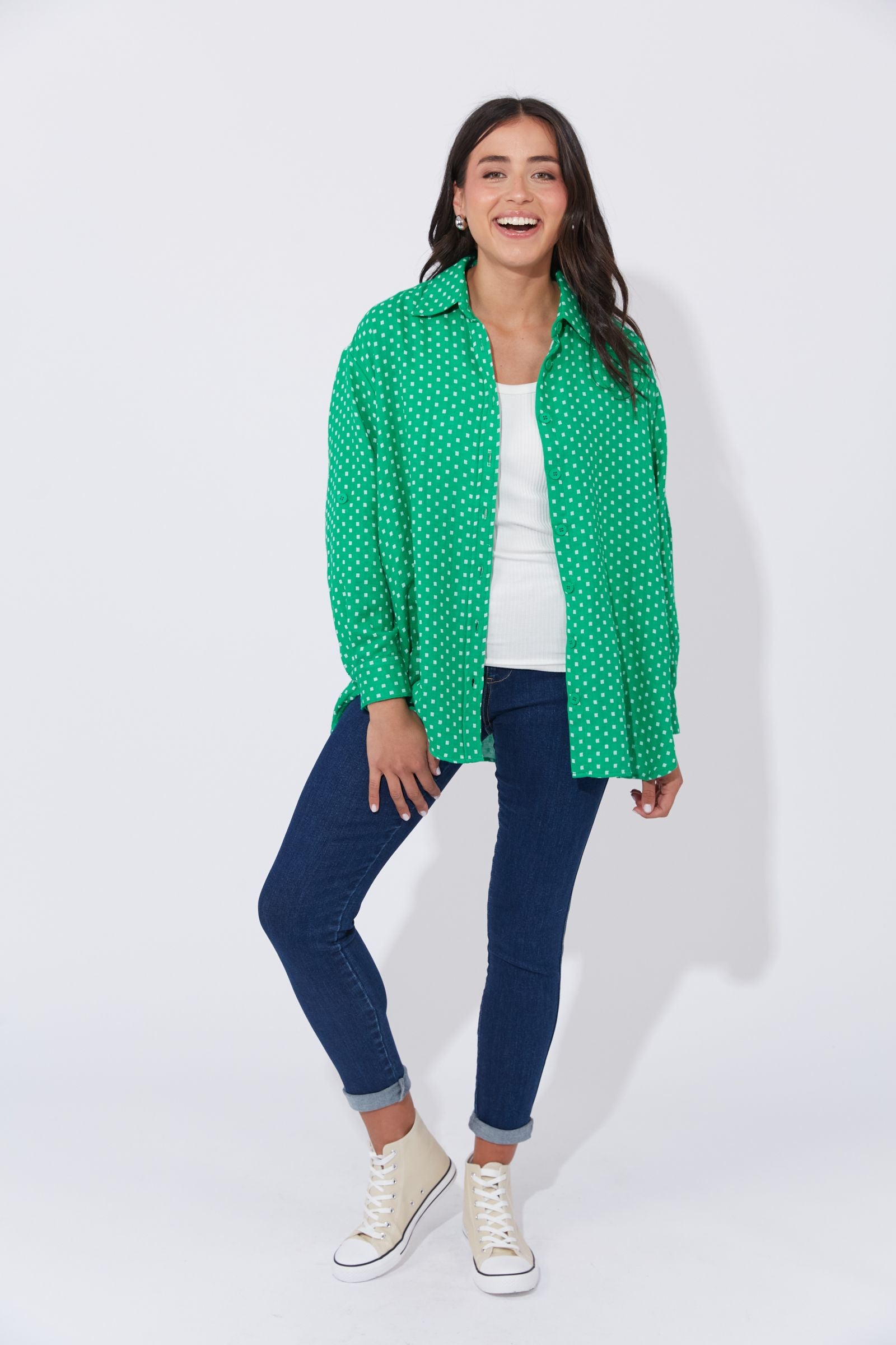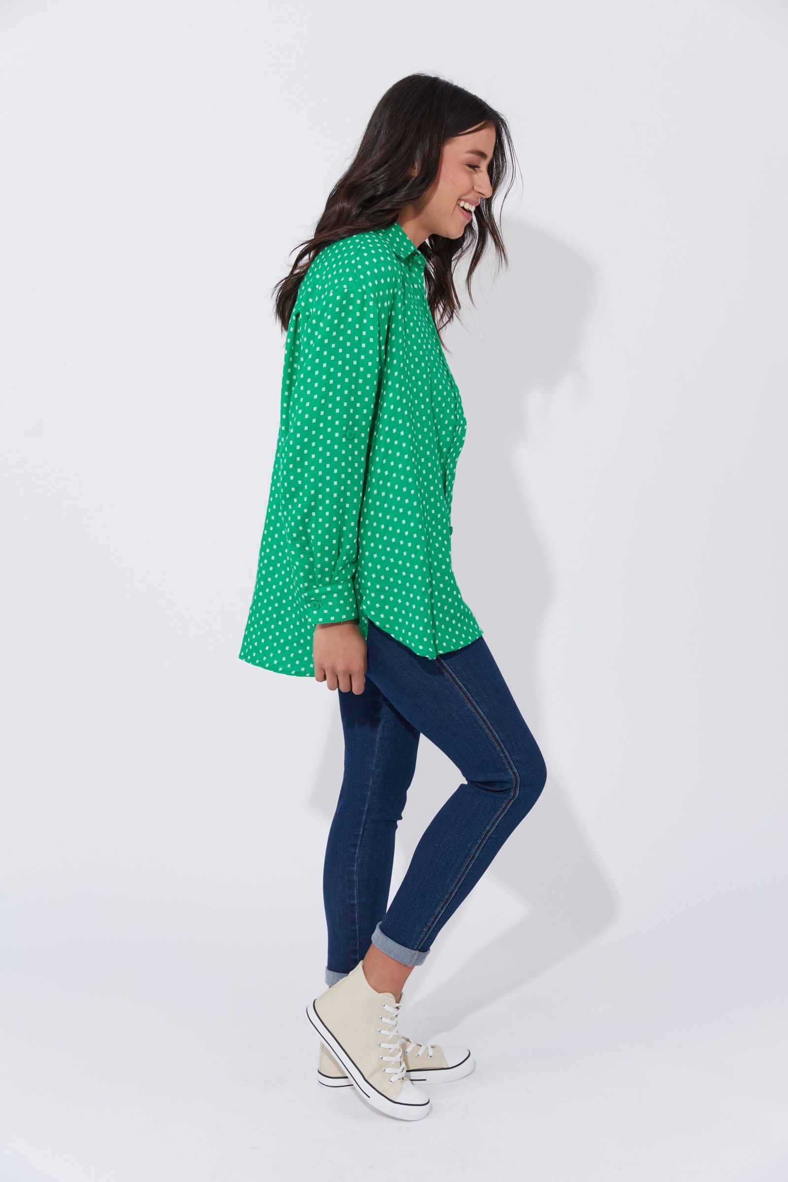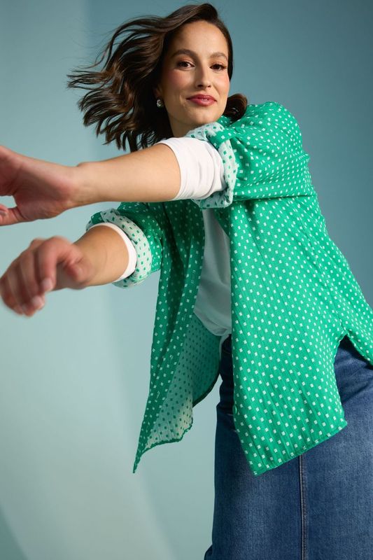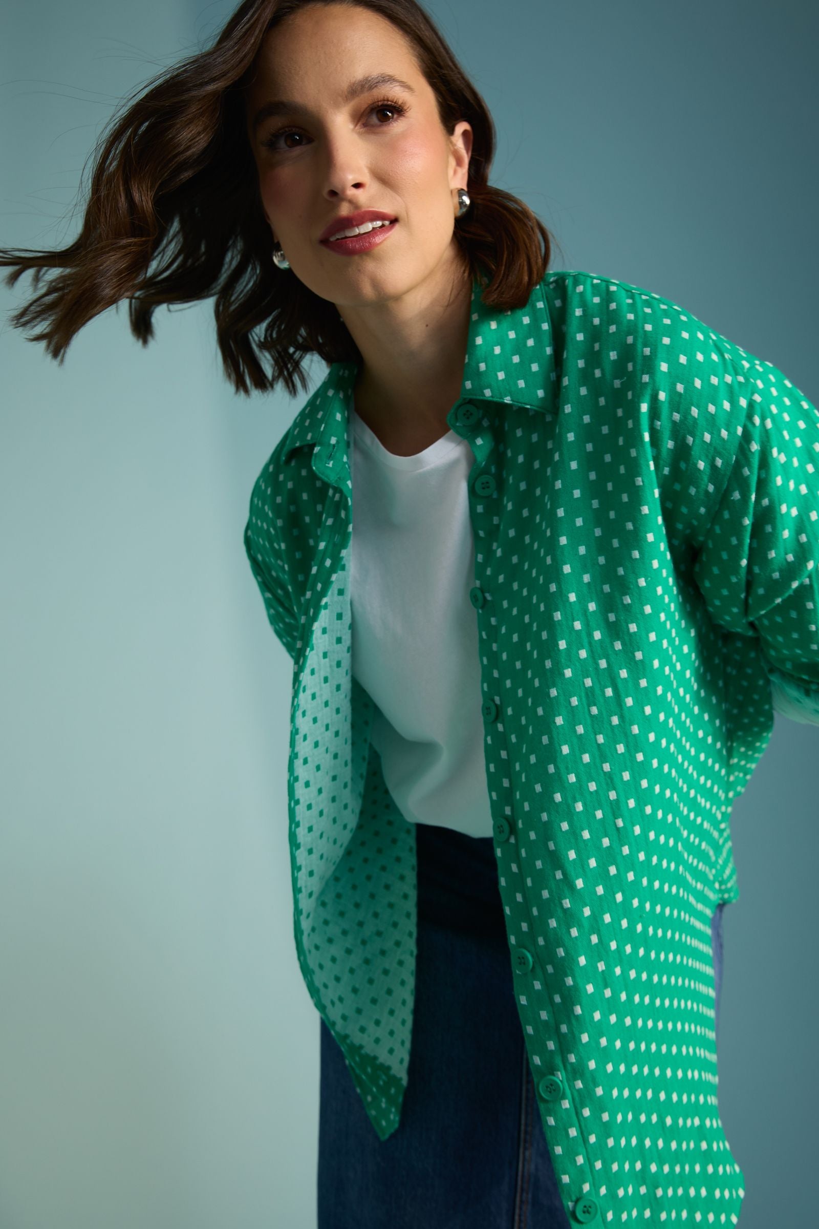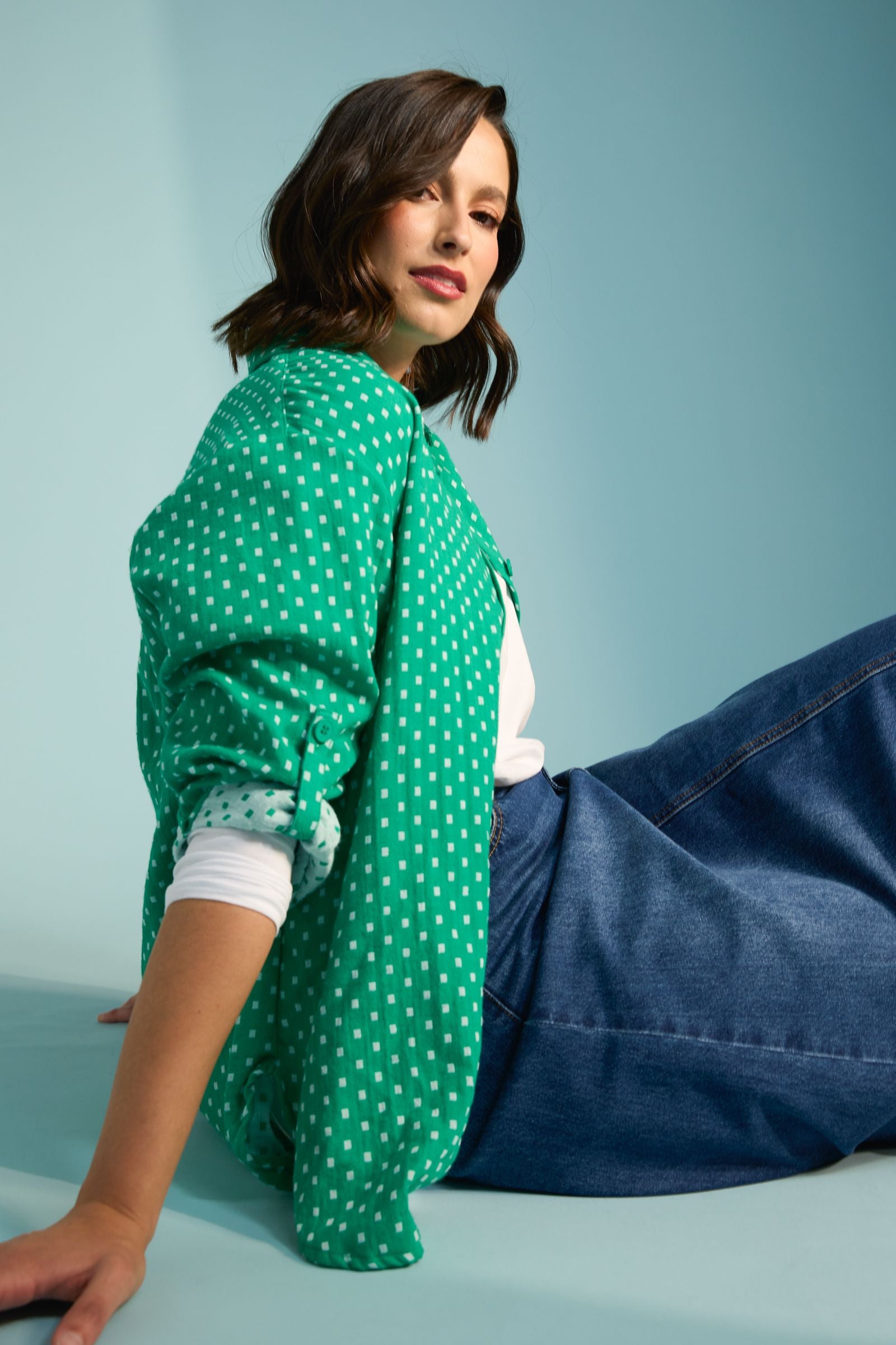 A timeless cotton shirt will go the distance in any wardrobe, and the relaxed Vanuatu Shirt is a perfect example. With its curved high-low hem, you can style it tucked in or left loose for versatile looks. The delicate square print adds charm, while the tab button sleeves provide a striking colour block effect when rolled. Pair it with loose pants for a casual vibe, or layer it under a knit sweater or vest for added warmth and texture.